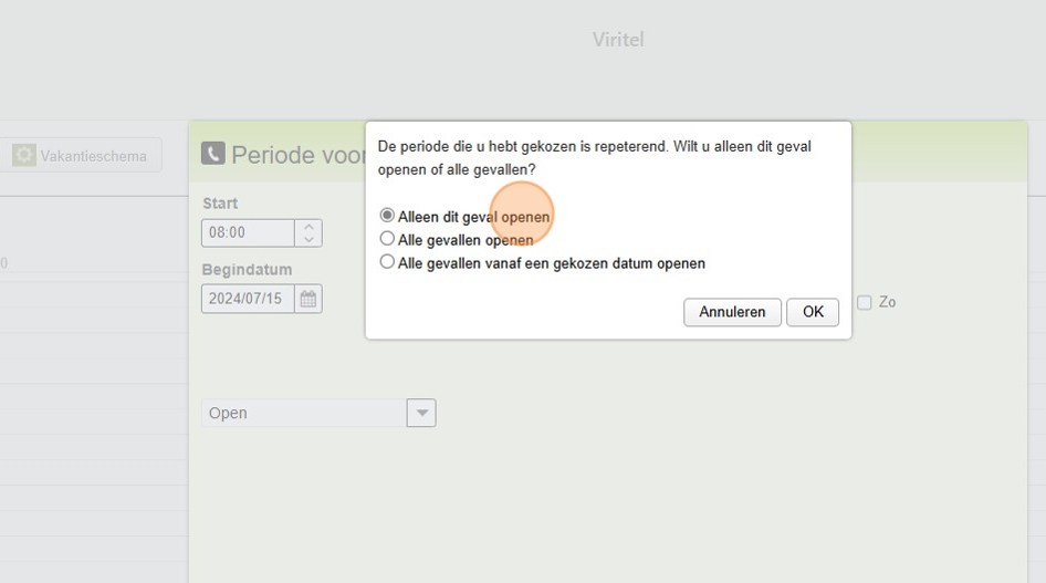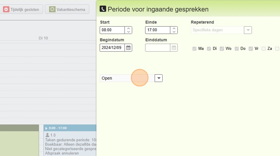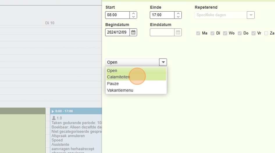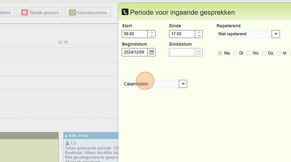 8. Zijn de calamiteiten voorbij en wil je het 'open' keuzemenu weer aanzetten? Klik dan op het groene blok "Calamiteiten".